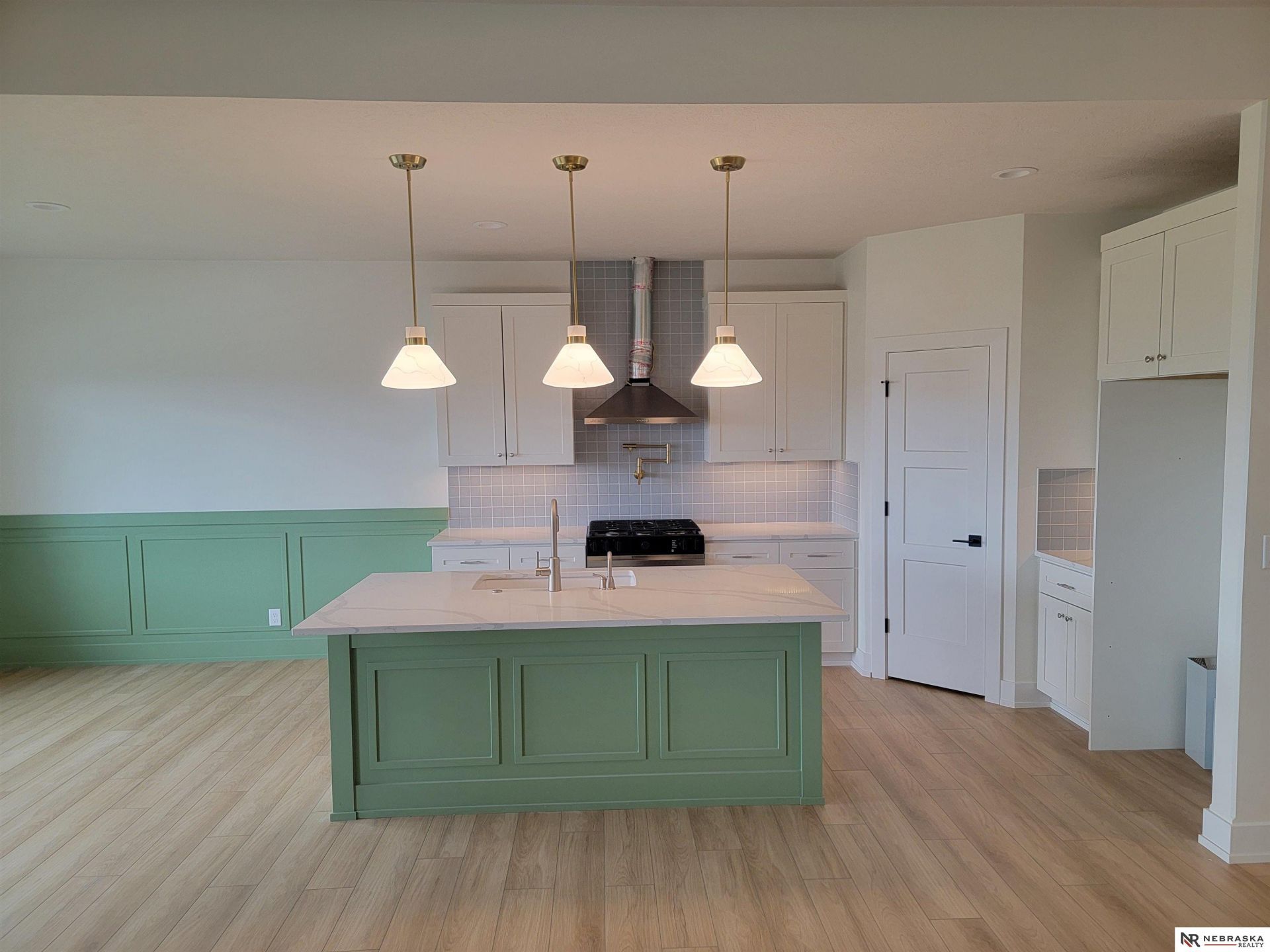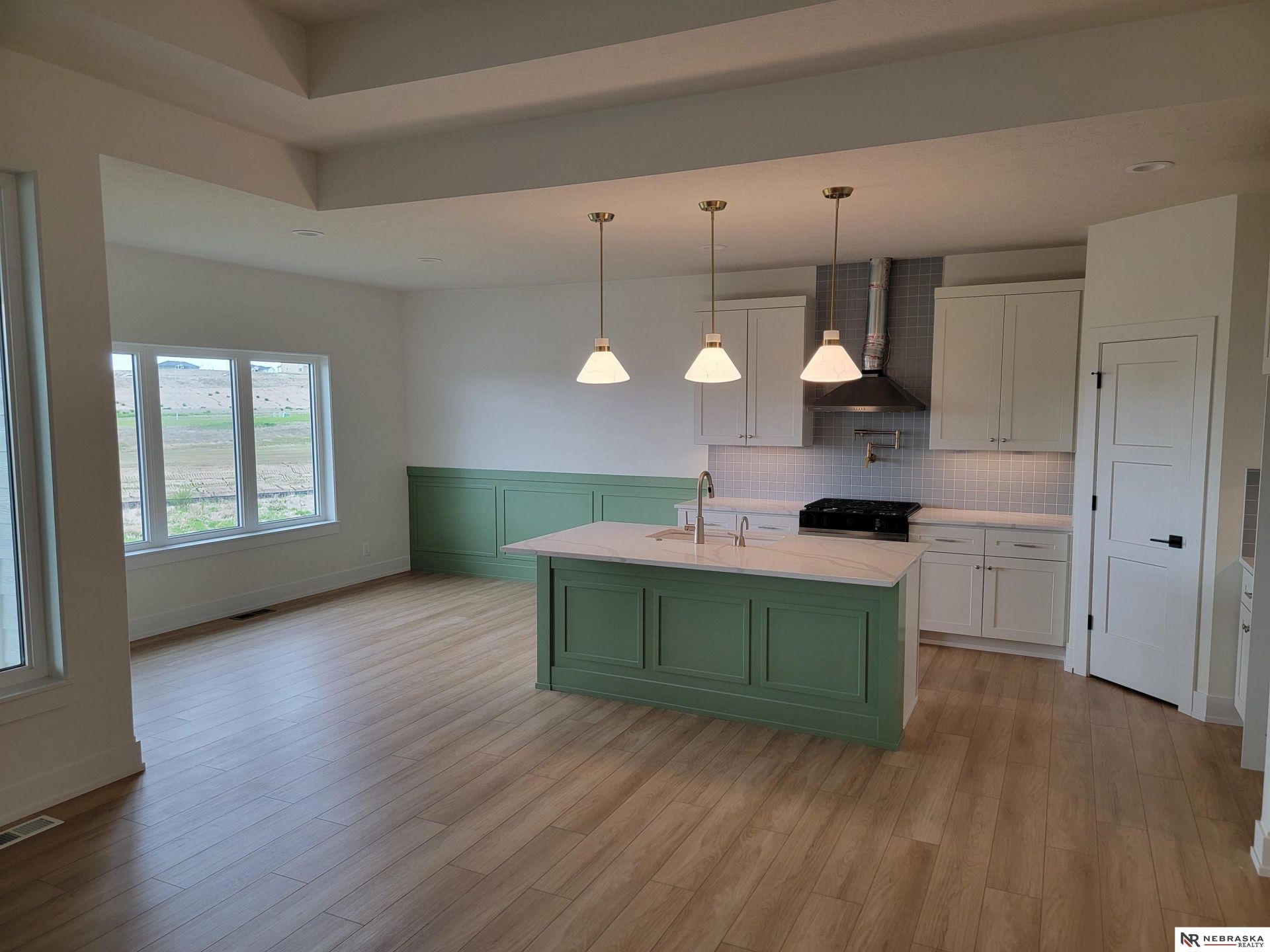 Open Sunday, April 19th, 1:00 to 2:30. Luxury Walkout Ranch in Gretna! This exceptional 5-bedroom, 3-bath home offers an oversized 1,650 sq ft 6-car garage and high-end finishes throughout. The main level features soaring 10' ceilings with elegant coffered details in both the great room and primary suite. A striking fireplace anchors the open-concept living area, while the chef's kitchen boasts a gas range, quartz-appointed island, and spacious walk-in pantry. The spa-like primary bath leads to an expansive walk-in closet with direct access to the laundry room for ultimate convenience. The walkout lower level is designed for entertaining, featuring a massive 28' x 23' rec room with a bar, a dedicated theater/gym, two additional bedrooms, and a full bath. Enjoy outdoor living on the covered deck and patio, with full sod and underground sprinklers included. This home perfectly combines luxury, function, and thoughtful design. We are breaking ground end of May.